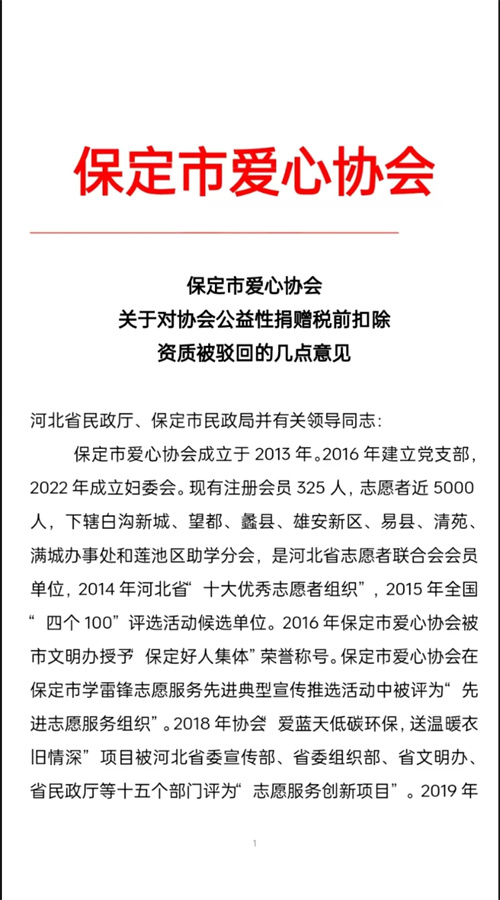 关于对协会公益性捐赠税前扣除资质被驳回的几点意见